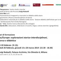 Nei giorni scorsi, presso Palazzo Archinto, sede dell'ASP Golgi-Redaelli, in via Olmetto 6 a Milano, si è concluso il ciclo dei quattro seminari [20 febbraio (ore 9 - 13.00) e 26 febbraio, 13 e 20 marzo (ore 15.30 - 18-30)], promossi da Archivio Bergamasco Centro studi e ricerche, ASP (Azienda di Servizi alla Persona) Golgi-Redaelli, Casa editrice BBN s.r.l. (Fosdinovo/MS), Clio ’92, IRIS, LANDIS (Laboratorio nazionale per la didattica della storia – Sezione didattica dell’Istituto per la storia e le memorie del Novecento Parri Emilia-Romagna), Mani Tese – CRES (Centro ricerca educazione allo sviluppo) e Rete lombarda ELLIS (Educazioni, letterature e musiche, lingue, scienze storiche e geografiche) e dedicati a ripensare criticamente le esperienze nazionali e internazionali di educazione alla cittadinanza europea e mondiale nella scuola e nell'educazione permanente, con l'intento - tra gli altri - di riflettere sul ruolo che una dimensione europea (non eurocentrica) può giocare nei curricoli, nei 'programmi' (o indicazioni) e nei manuali delle singole materie/discipline.