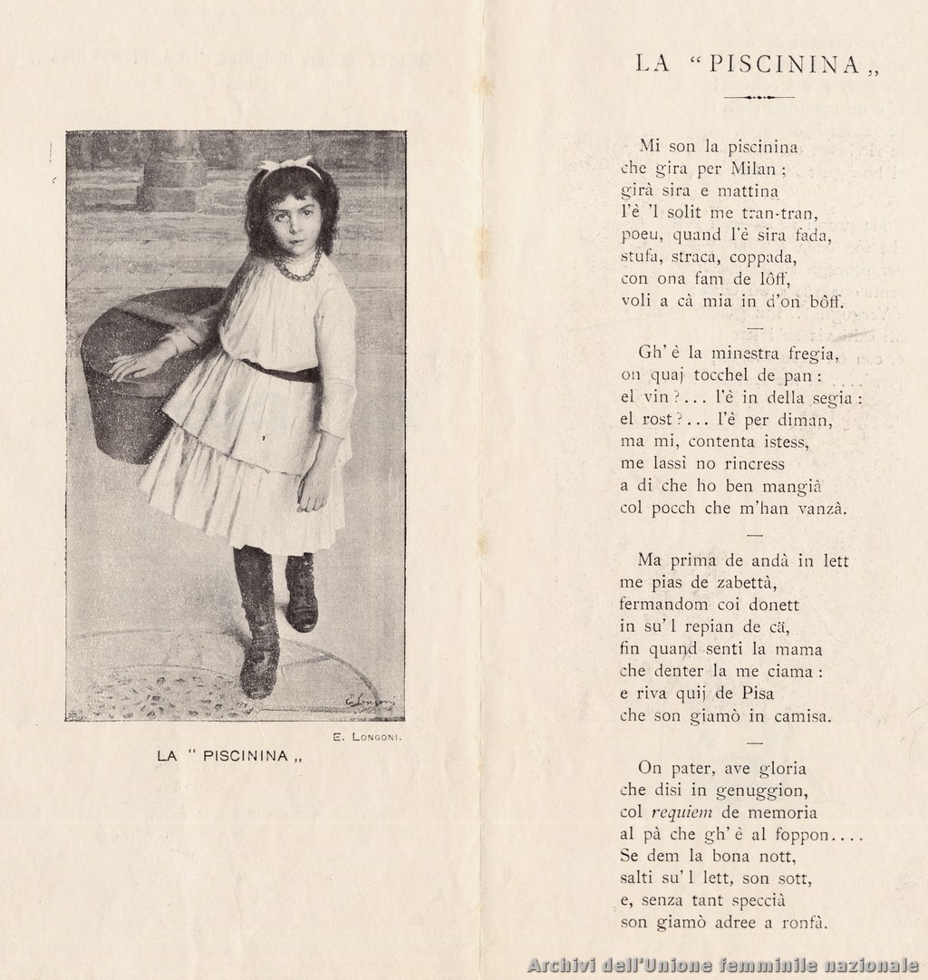 Le piscinine erano bambine di età compresa tra i 6 e i 13 anni, impiegate formalmente come apprendiste presso le tante sartorie presenti nella elegante Milano di inizio secolo.