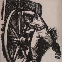 In alto: Noi aiutiamo, disegno di Augusto Colombo, 1947.